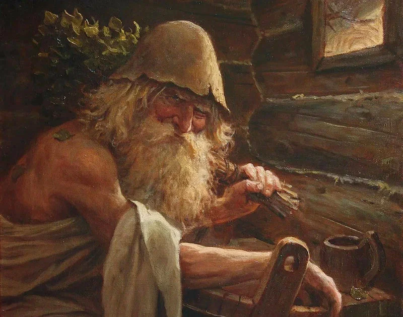 Можно сказать, что Банник - это двоюродный брат Домового. Обычно очень лохматый и угрюмый старик, но может и перевоплощаться в другие образы. Легко превращается в белого кота или зайца, а может стать просто веником. Живет за каменкой или под полом в бане.
