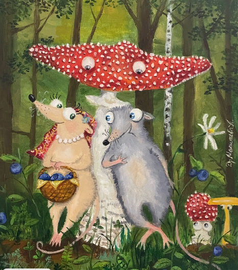 Но характеры и эмоции крысок, кошек, белочек и прочих зверюшек легко читаются по их милым мордашкам. При построении пейзажей Настя частенько вдохновляется картинами эпохи Возрождения. Такой вот креативный симбиоз мультяшных зверюшек на фоне, навеянном творчеством Старых Мастеров.