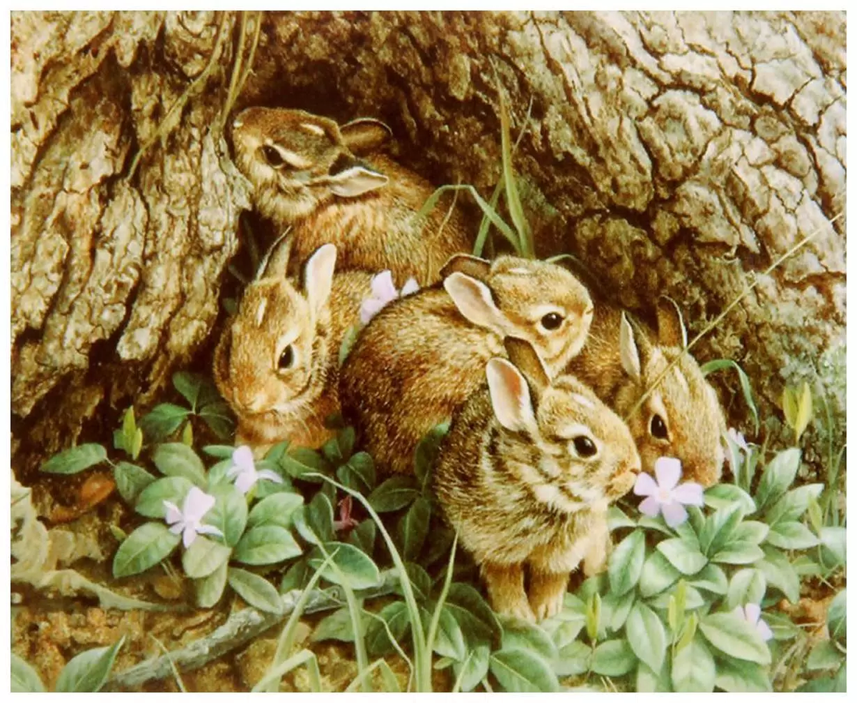 • У ушастых именины - зайчихи дали приплод. Премилые видом, пушистые, зайчата появляются на свет, когда еще снег не сошёл.