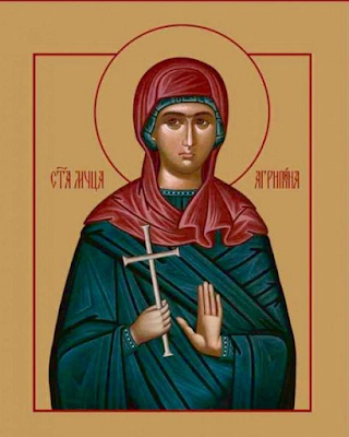 Святая Агриппина жила в III веке. Она родилась в Риме и происходила из знатной семьи. С юности дева посвятила себя Богу. Благоухание ее добродетелей было для христиан подобно предвкушению райского блаженства, и они отрекались от страстей, чтобы вслед за святой Агриппиной пойти по пути чистоты и девства. Многие юные девы и женщины зрелого возраста стремились разделить ее образ жизни, чтобы иметь часть в той благодати, которую Господь даровал святой Агриппине.
