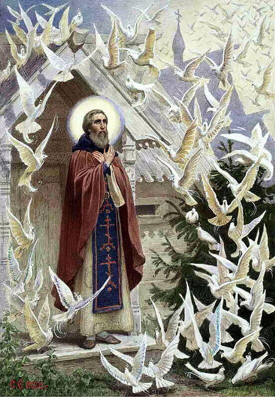 В другой раз он видел необыкновенный свет и множество птиц, оглашавших воздух благозвучным пением, и получил откровение, что множество иноков соберется в его обители.