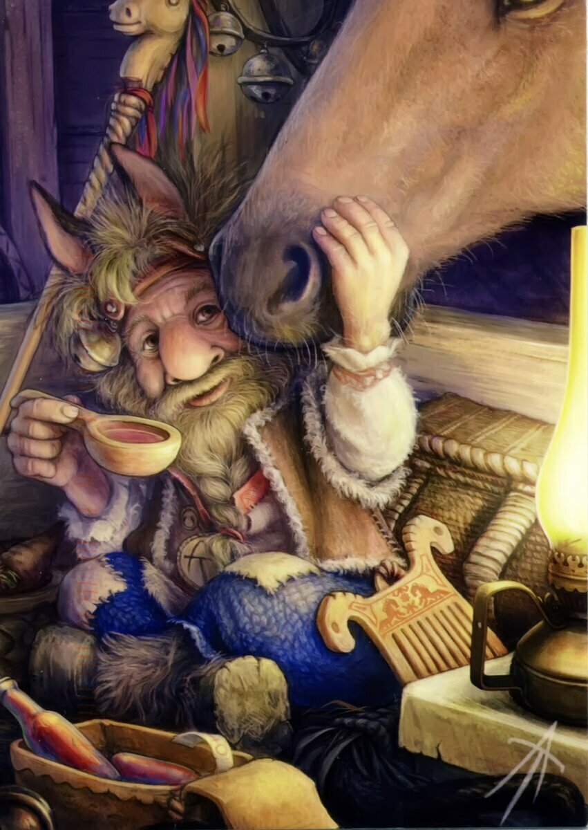 "Выходи, сторож конюшенный! С нами, чем богаты, откушай!" Оставят Домовому кусок хлеба ржаного на соломе, ложкой деревянной каши почерпнут и уходят после.